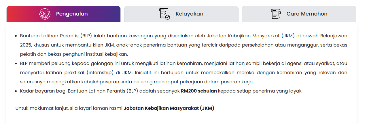 Pengenalan Bantuan Latihan Perantis (BLP)