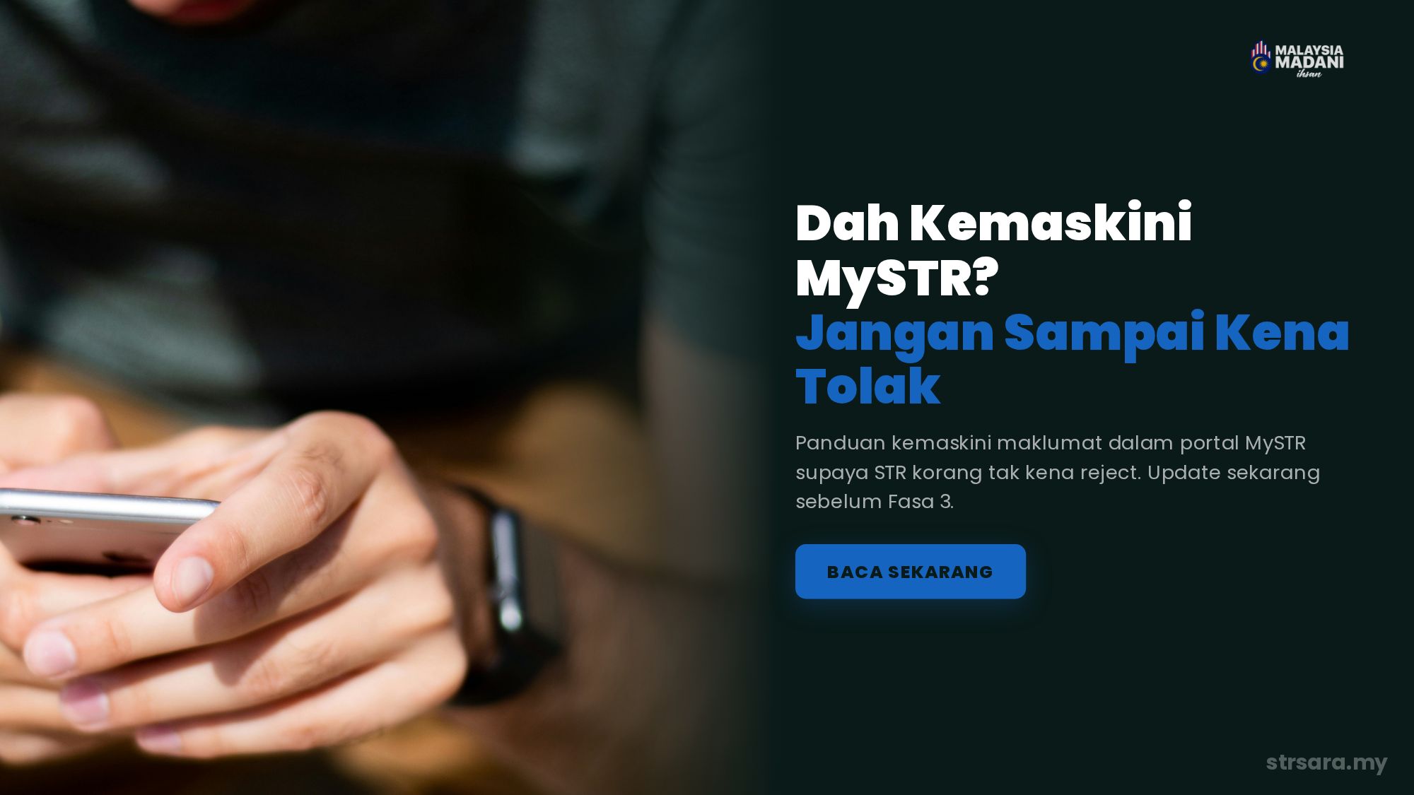 STR Fasa 1 dan Fasa 2 dah selesai. Fasa 3 belum diumumkan lagi. Jadi sekarang ni masa paling sesuai untuk korang kemaskini semua maklumat. Bila pengumuman keluar nanti, korang dah ready.