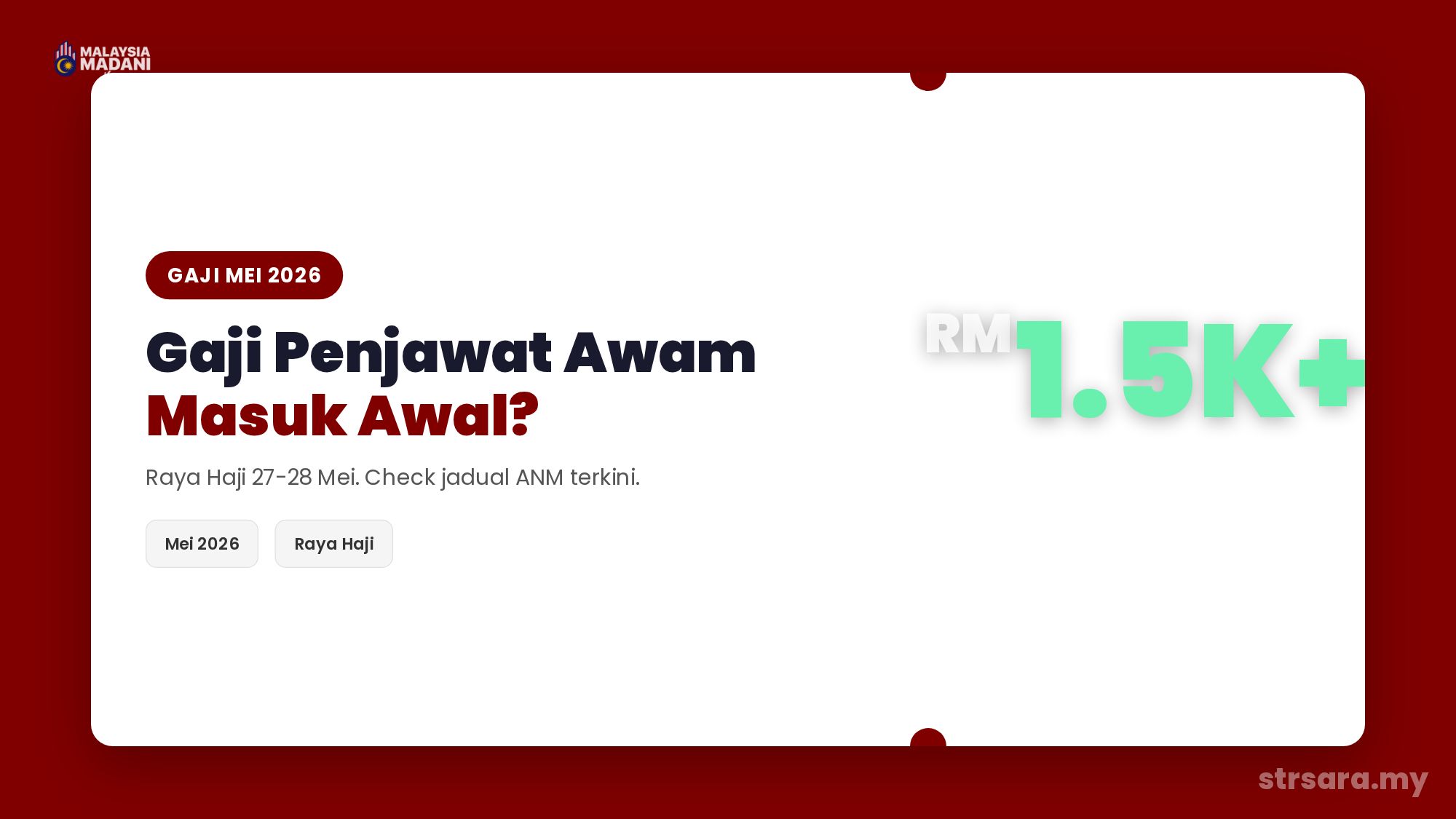 Korang penjawat awam ke? Kalau ya, mesti dah start tanya soalan sama setiap bulan. “Bila gaji masuk?” Tapi bulan Mei 2026 ni lagi best, sebab Raya Haji jatuh 27 dan 28 Mei. So ramai yang tertanya, gaji masuk awal ke tak?