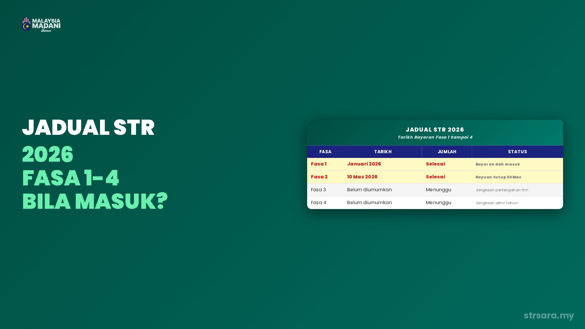 Jadual Penuh STR 2026: Fasa 1 Sampai 4