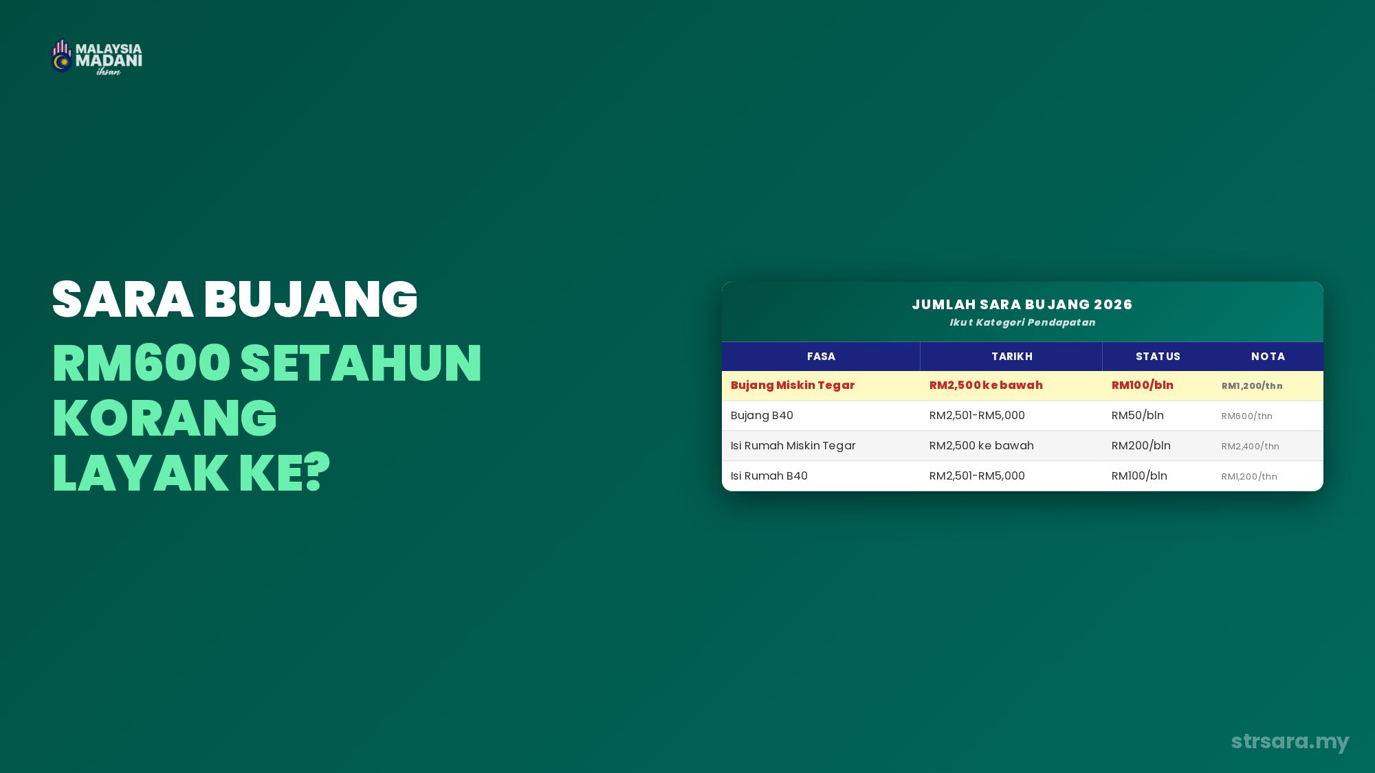 Syarat Kelayakan SARA Bujang 2026