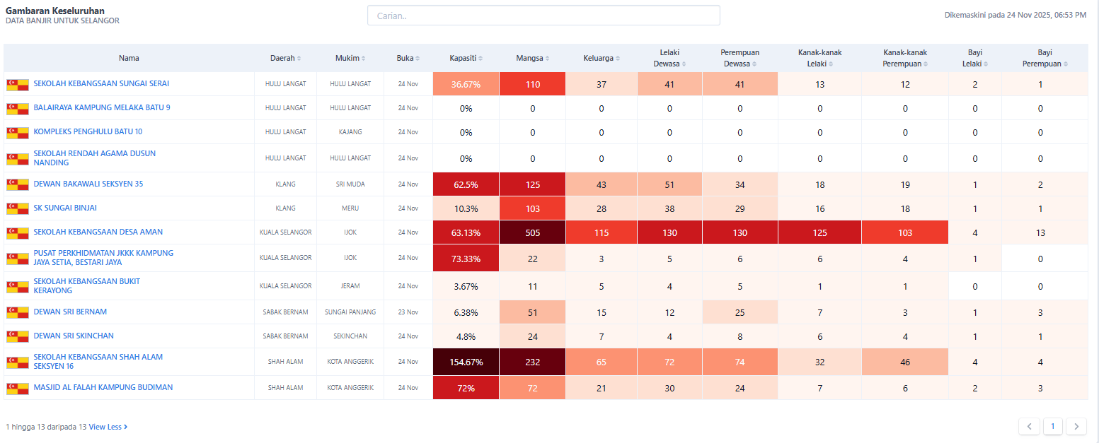 Pusat Pemindahan Sementara yang Diaktifkan di Selangor (2025)